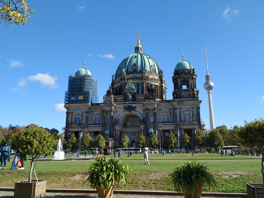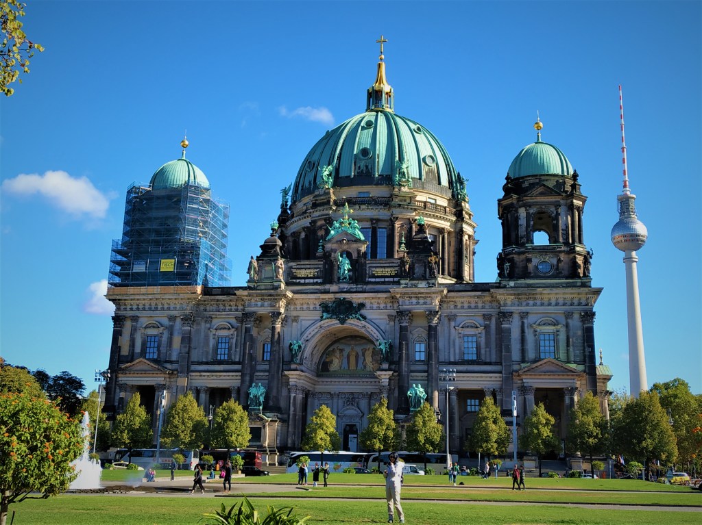 Se encuentra al lado de la Bebelplatz. La Catedral de Berlín es uno de los edificios más representativos de la ciudad. La catedral la corona una cúpula de color verdoso. Se puede subir a ella para observar la ciudad desde arriba por 7€. En la derecha de la foto de abajo se puede observar la Torre de la Televisión. Ésta hace 368 metros de altura. Es posible subir y contemplar las vistas desde ella por 16,5€. Además, podéis disfrutar del restaurante giratorio de la torre, situado unos metros por encima del mirador.