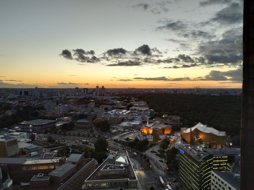 Si os gustan las alturas por aquí también os dejo las vistas desde Panoramapunkt. Este punto lo visitamos al regresar de una excursión cerca de Berlín. Es un mirador abierto y se encuentra en Postdamerplatz. Este cuenta con una pequeña exposición. El mirador abre a diario de 10:00-20:00. Se sube al mirador con el ascensor más rápido de Europa y el viaje solo dura 20 segundos que es lo que se tarda en alcanzar los 100 metros de altura del mirador.