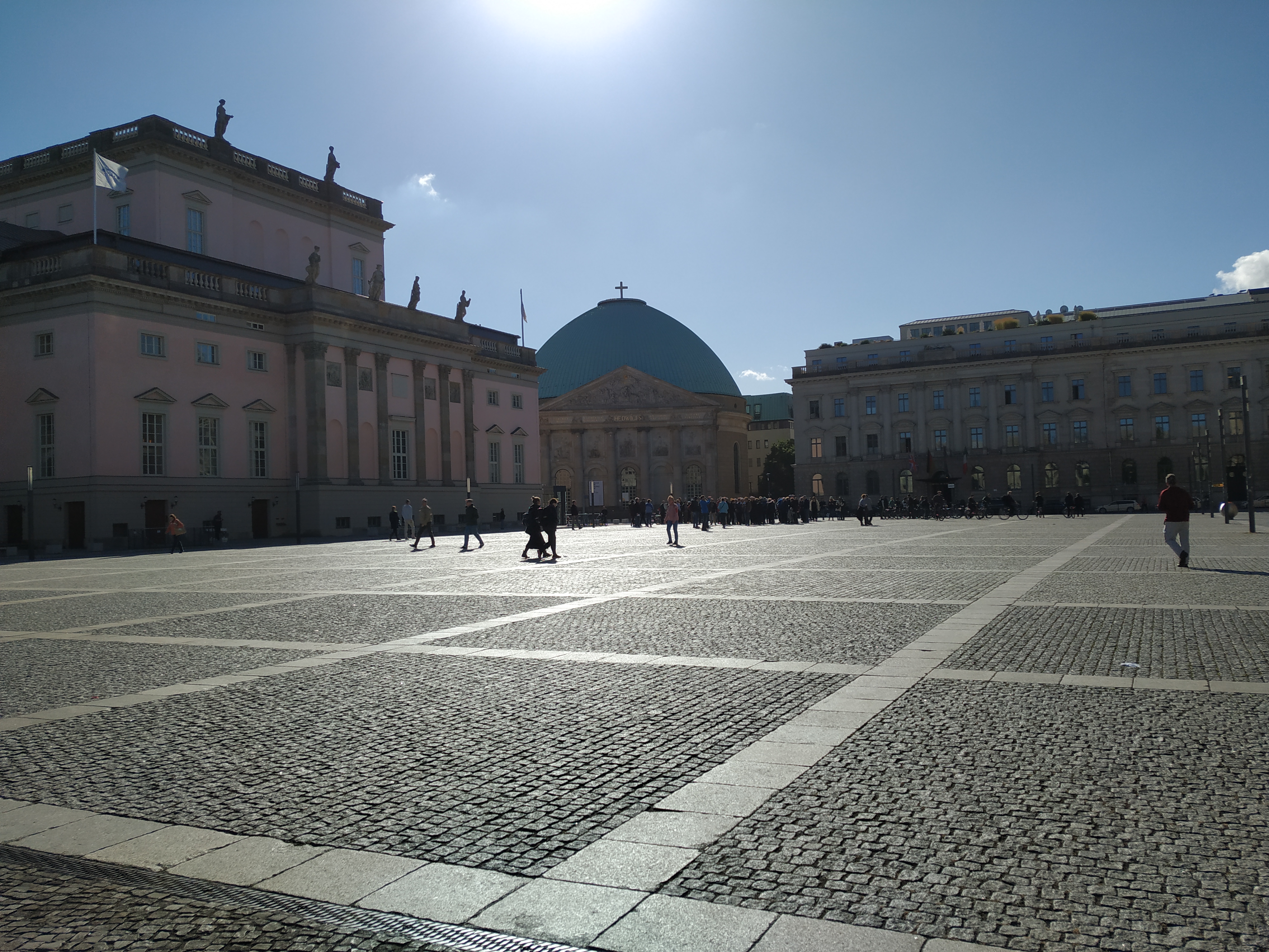 Esta plaza,además está rodeada de edificios fascinantes. Vais a poder ver la Alte Bibliothek (Antigua Biblioteca), Staatsoper (Ópera Estatal) y la Sankt-Hedwings-Kathedral (Catedral de Santa Eduvigs).