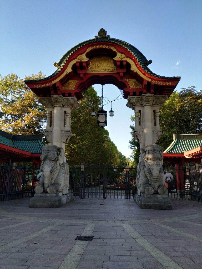 Enfrente de la entrada de la iglesia se construyó la Iglesia Nueva formada por cristales azules que reflejan luz en su interior. Muy cerquita también se encuentra el Zoo. Nosotros nos acercamos a ver la puerta de aire asiático.
