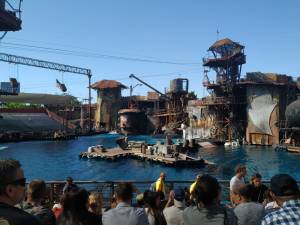 Solo tuvimos tiempo de ver WaterWorld. La verdad es que merece mucho la pena. Es impresionante lo que se puede llegar a ver en unos minutos: fuego, agua, explosiones…todo a pocos metros de tu asiento. La coordinación y actuación de los actores y especialistas es espectacular.