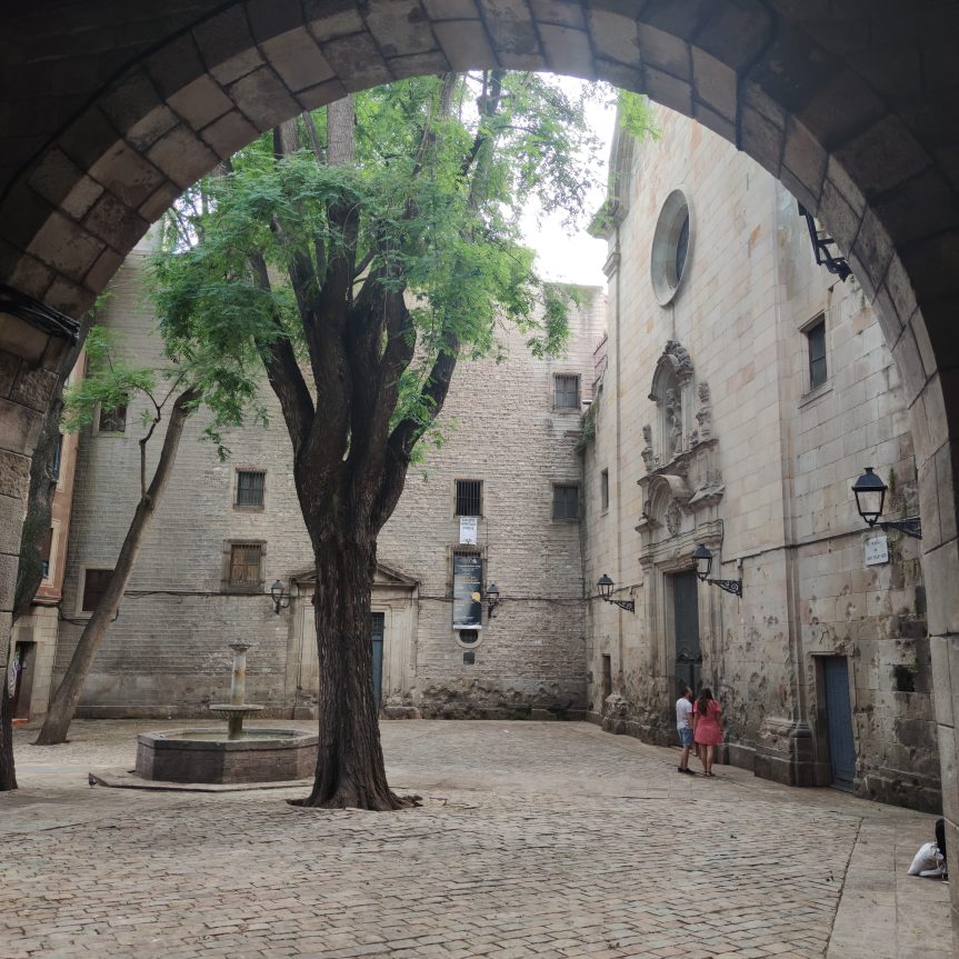 Antes de llegar a la Catedral, nos desviamos para encontrar un pedacito de calma en pleno centro de Barcelona. Suena imposible. ¿Verdad? Pues la Plaça Felip Neri es capaz de envolveros en un silencio que parece inimaginable.
