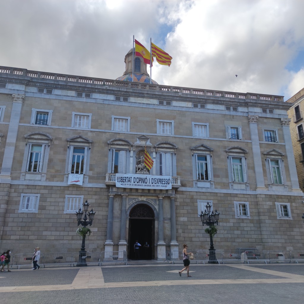Seguimos callejeando para llegar a la Plaça Sant Jaume. En esta plaza se encuentra el Ayuntamiento de Barcelona y el Palau de la Generalitat. El Palau de la Generalidad es la sede de la Presidencia de la Generalitat de Catalunya.
