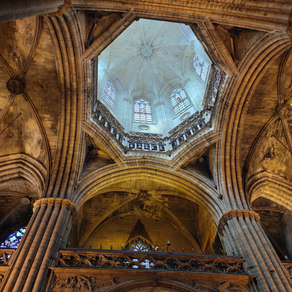 Seguimos andando y, en algo menos de un minuto, llegamos a la Catedral de Barcelona. La Catedral se empezó a construir en el siglo XIII, sobre el anterior templo románico. La fachada principal fue levantada en el siglo XIX y algunos detalles se acabaron en pleno siglo XX. Aquí encontraréis el horario.