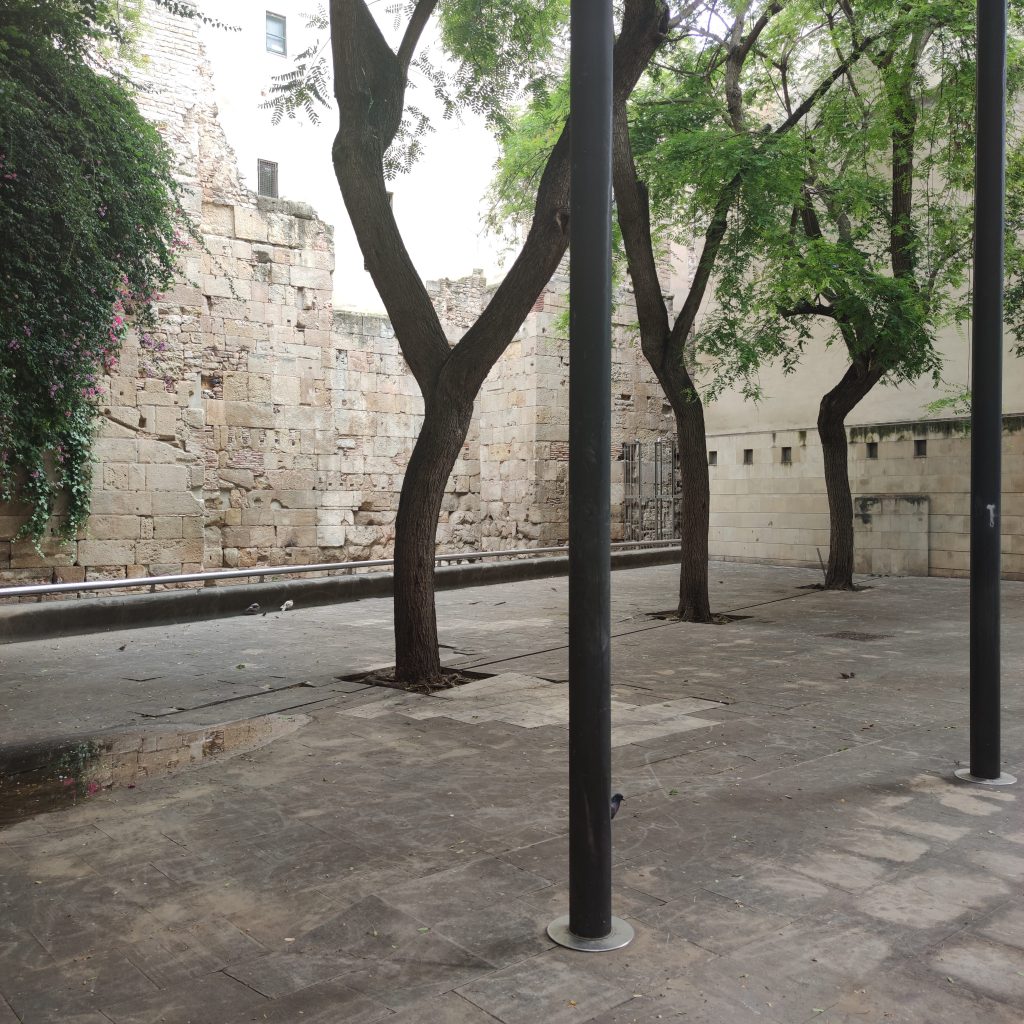 Seguidamente, nos desviamos para ver uno de los trozos de la muralla Romana que se conserva. Justo después, nos dirigimos a Portal de L’Ángel para realizar algunas compras. Portal de L’Ángel fue, durante el siglo XIII, una de las puertas que daban acceso a la ciudad, ya que se encontraba fortificada. Actualmente, es la avenida comercial más famosa de la ciudad.