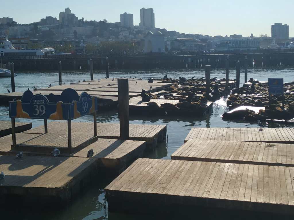 Llegamos al 39. ¡Vaya tela! Lo que tienen montado allí no tiene nombre. Tiendas, restaurantes, atracciones, espectáculos, música en vivo etc. Nos quedamos alucinados. Y como no… ¡Leones Marinos! Sí, sí… Leones Marinos tomando el sol tan panchos. Nosotros pasamos prácticamente, con mucha calma, toda la mañana allí.