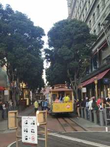 Nos dirigimos hacia la zona comercial de San Francisco. Union Square nos pareció una plaza, sin más. Es la zona comercial. Nos acercamos andando a Powell Street para ver el CableCar (Subir en él son unos 7$). Había una cola larguísima y por esta vez, podríamos decir que por primera vez, pasamos de hacer la turistada del día. Además, justo acabábamos de bajar la colina.